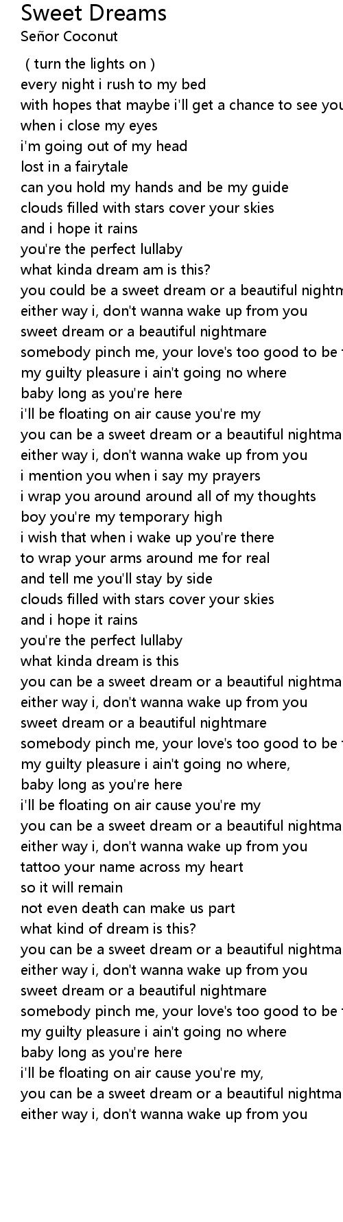 Subscribe and press ( ) to join the Notification Squad and stay updated with new uploads Follow Alessia Cara: . Sweet Dreams Lyrics are a theme that is being searched for and favored by netizens nowadays. You can Save the Sweet Dreams Lyrics here. Get all royalty-free picture. Eurythmics - Sweet Dreams Lyrics, Artist: Eurythmics Track: Sweet Dreams Label: Sony Music CG Release Date: 1983..